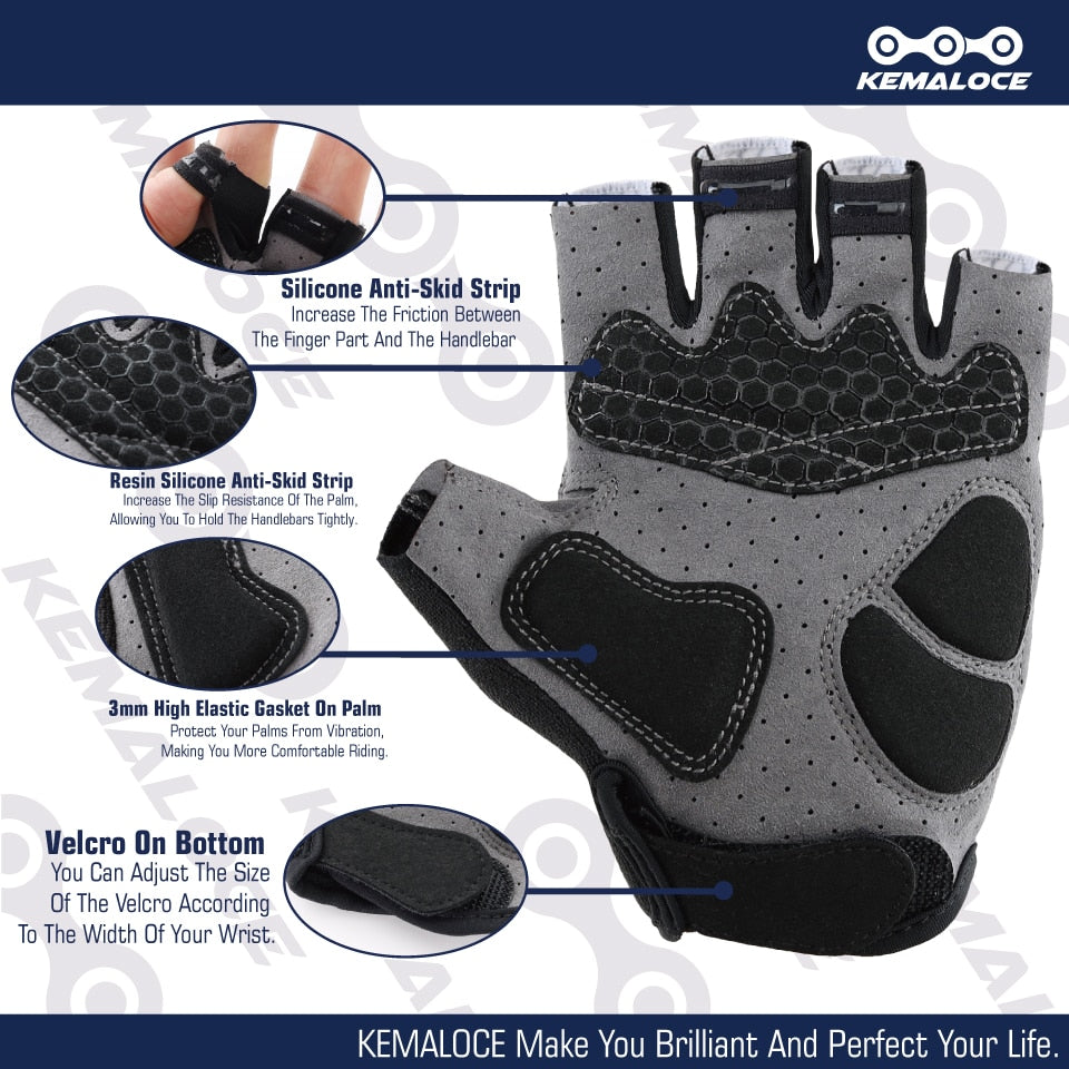 Our Cycling Gloves Men Women Road Racing Half Finger feature non-slip, reflective material and a snug, adjustable fit, making them perfect for outdoor sport biking. The mittens’ breathable fabric keeps hands cool and sweat-free in the heat. Enjoy enhanced control and precision with these durable, lightweight mittens.