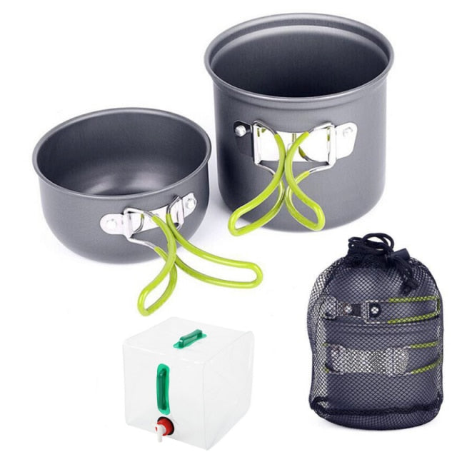 Outdoor Cookware Set Foldable Spoon Fork Knife Kettle Cup Camping Equipment Supplies 1-2 People