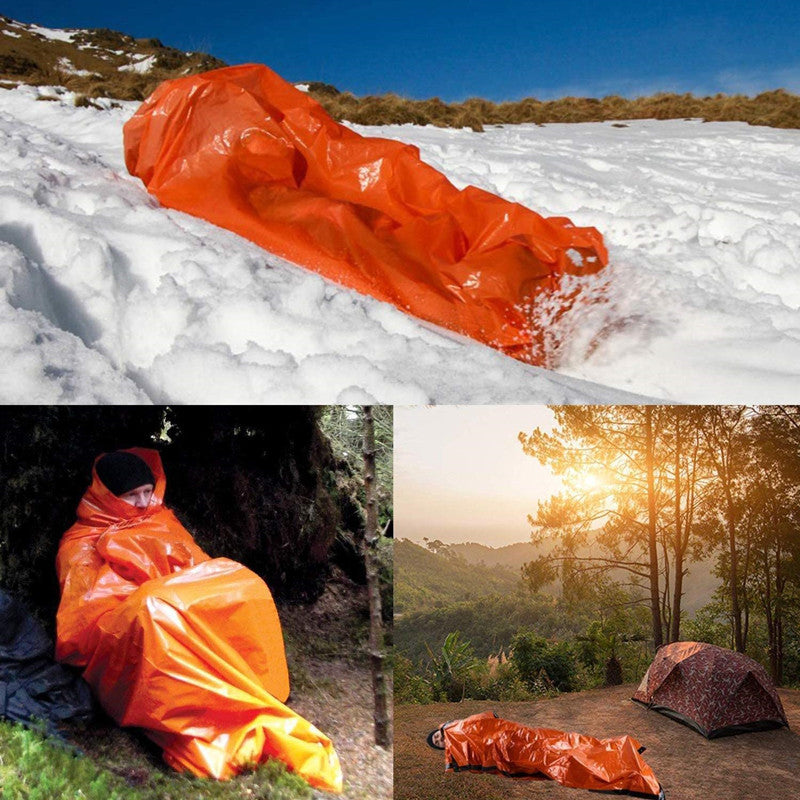 Keep warm and Alive.Used as a survival emergency Bivy Sack, poncho, emergency shelter, Protect you from rain,wind and snow. It can be used as ground cover, sleeping bag liner when you in extreme environments.