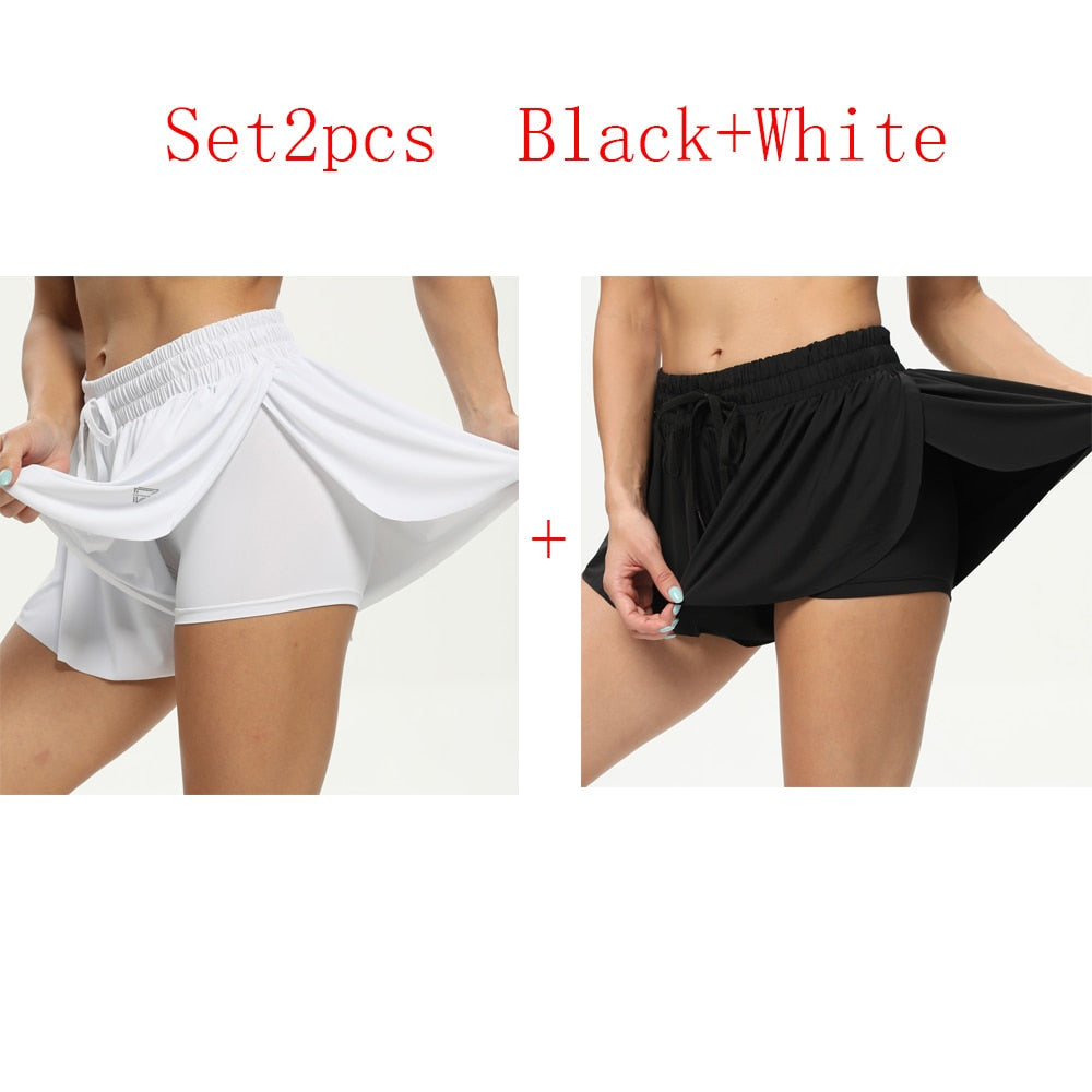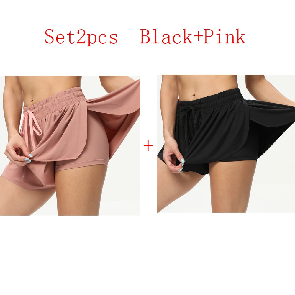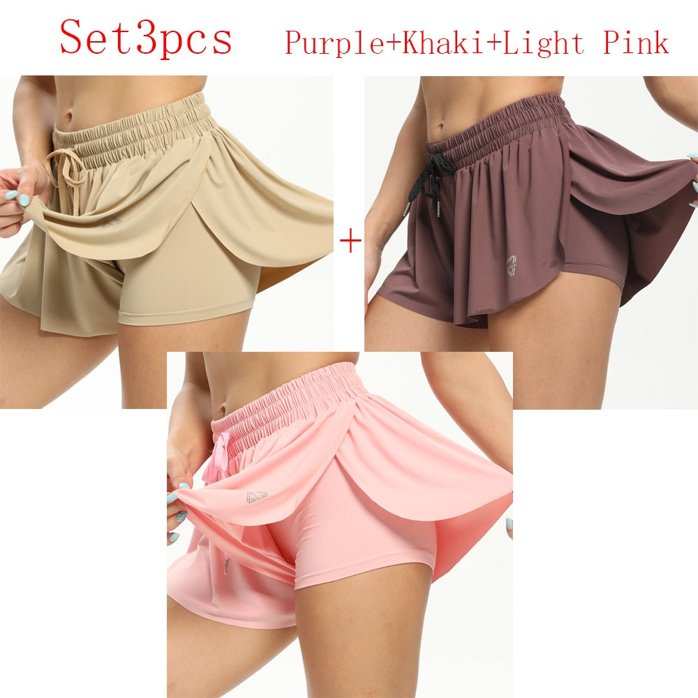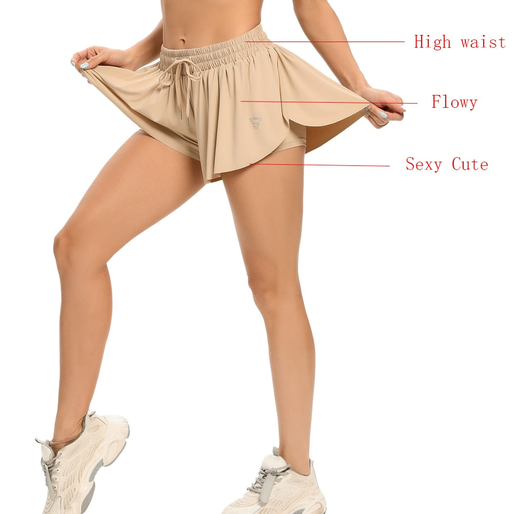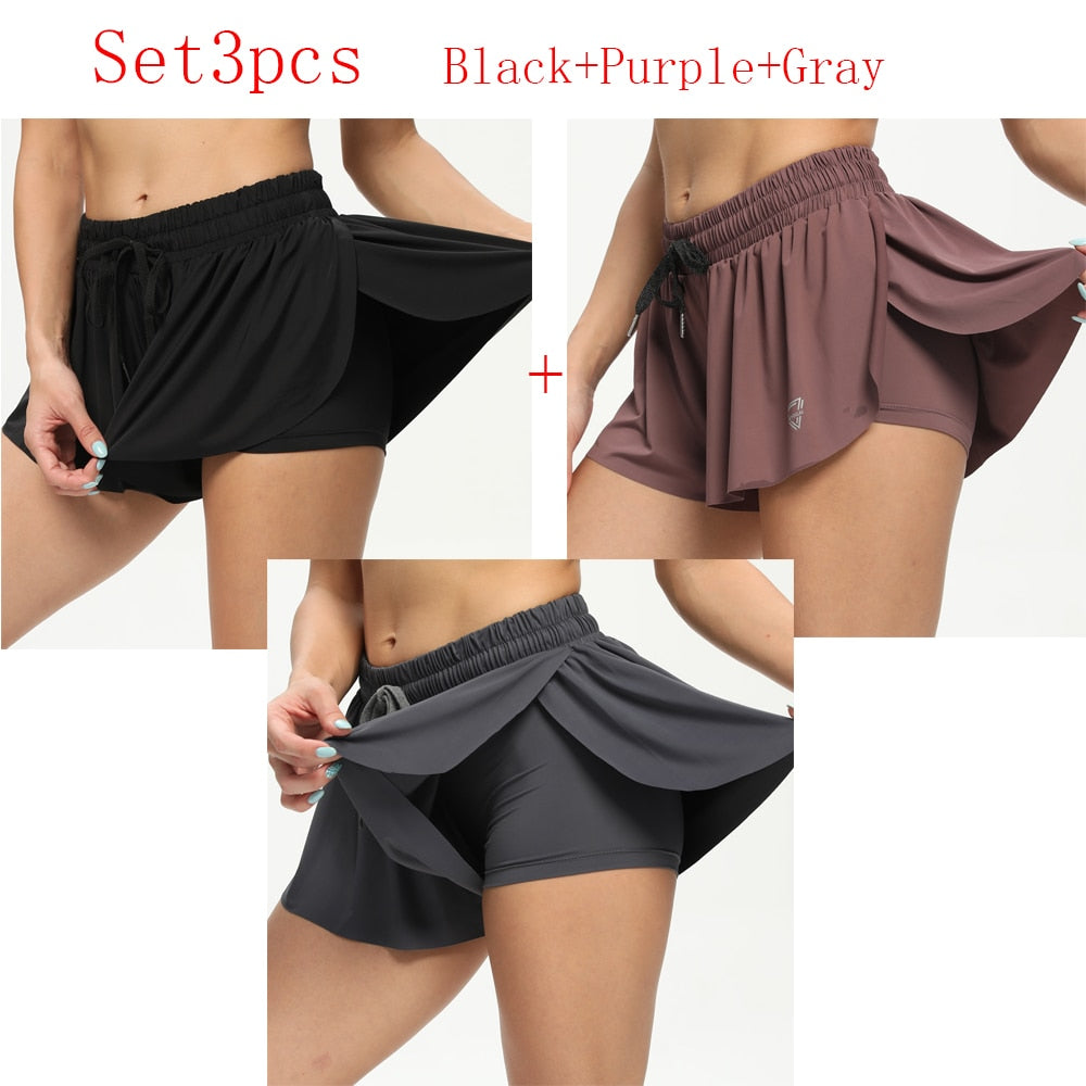 Women's High Waist Stretch Athletic Workout Active Fitness Elastic Shorts 2 In 1 Running Double Sports Gym Shorts Leggings